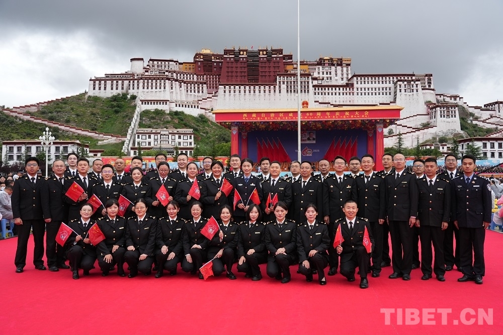 圖為參加慶祝大會的拉薩海關(guān)工作人員留影 攝影:楊眉笑
