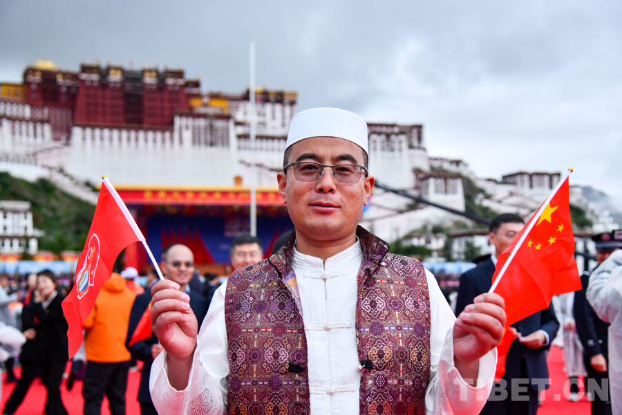 “今年是我來到西藏的第二十個年頭,從剛開始的一無所有,到現(xiàn)在的小康生活,這一切都是西藏這一塊寶地帶給我們的,都是當(dāng)?shù)赝麑ξ覀冃湃蔚慕Y(jié)果。作為西藏發(fā)展的參與者和見證者,有幸親眼見證這片土地二十年的發(fā)展與變化,今天能夠在布達(dá)拉宮廣場參與這一盛會,我心潮澎湃,倍感光榮?!眮碜愿拭C的馬志剛2005年起來到拉薩經(jīng)商。