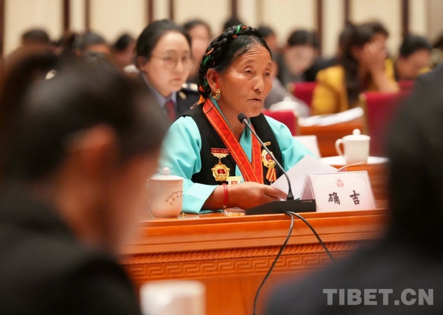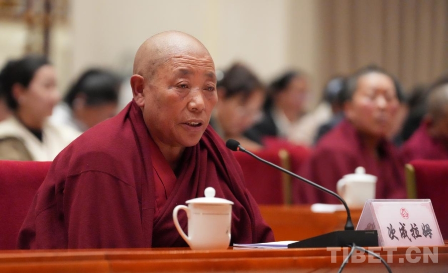 圖為拉薩市倉姑寺寺管會(huì)副主任次成拉姆發(fā)言