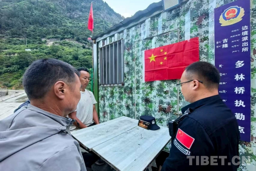 圖為日喀則邊境管理支隊吉隆邊境管理大隊吉隆邊境派出所多林橋執(zhí)勤點組織民警、護邊員和輔警觀看紀(jì)念中國人民抗日戰(zhàn)爭暨世界反法西斯戰(zhàn)爭勝利80周年大會 攝影:季韶龍