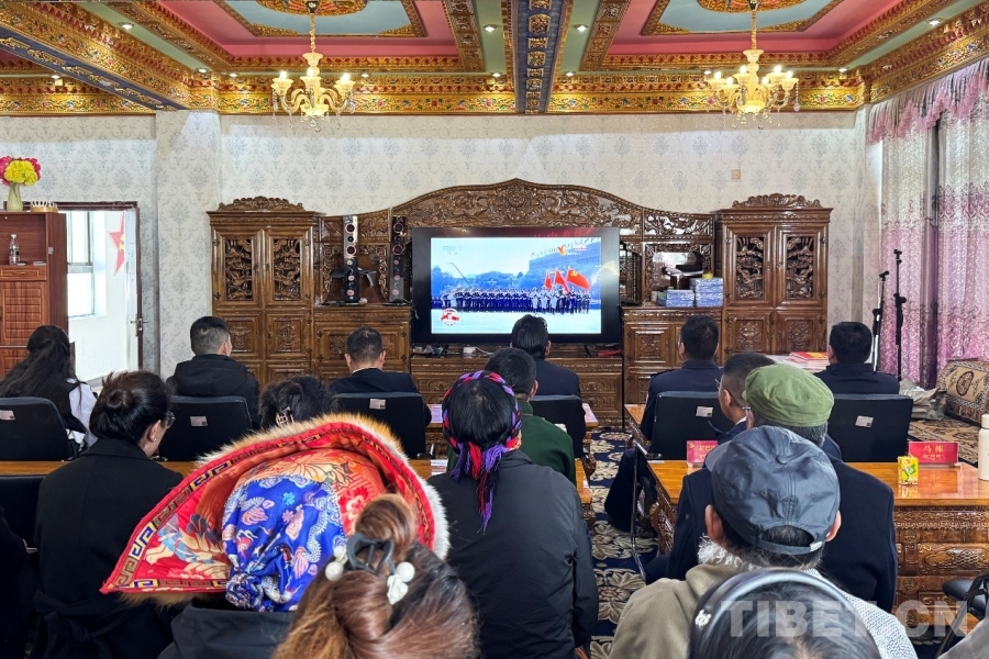 圖為日喀則邊境管理支隊仲巴邊境管理大隊帕羊邊境派出所與駐地人民政府聯(lián)合觀看紀(jì)念中國人民抗日戰(zhàn)爭暨世界反法西斯戰(zhàn)爭勝利80周年大會 攝影:次仁旺堆