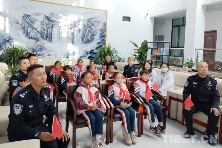 圖為日喀則邊境管理支隊康馬大隊涅如麥邊境派出所邀請學(xué)生一起觀看紀(jì)念中國人民抗日戰(zhàn)爭暨世界反法西斯戰(zhàn)爭勝利80周年大會 攝影:柳曉紅