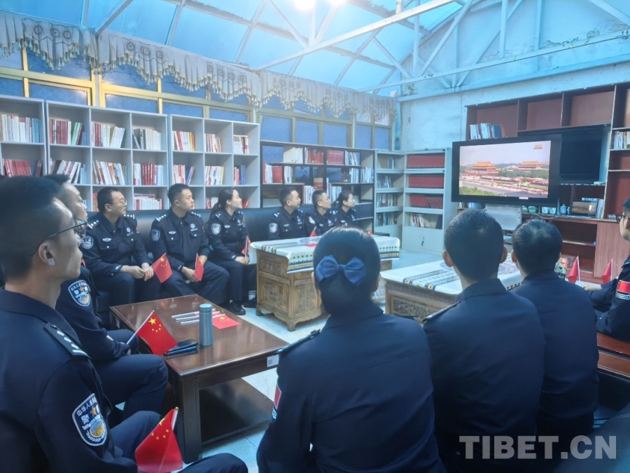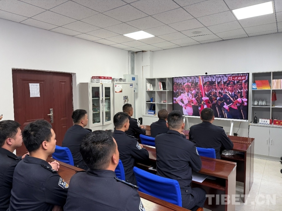 圖為日喀則邊境管理支隊康布邊境派出所組織全體民警觀看紀(jì)念中國人民抗日戰(zhàn)爭暨世界反法西斯戰(zhàn)爭勝利80周年大會 攝影:周偉