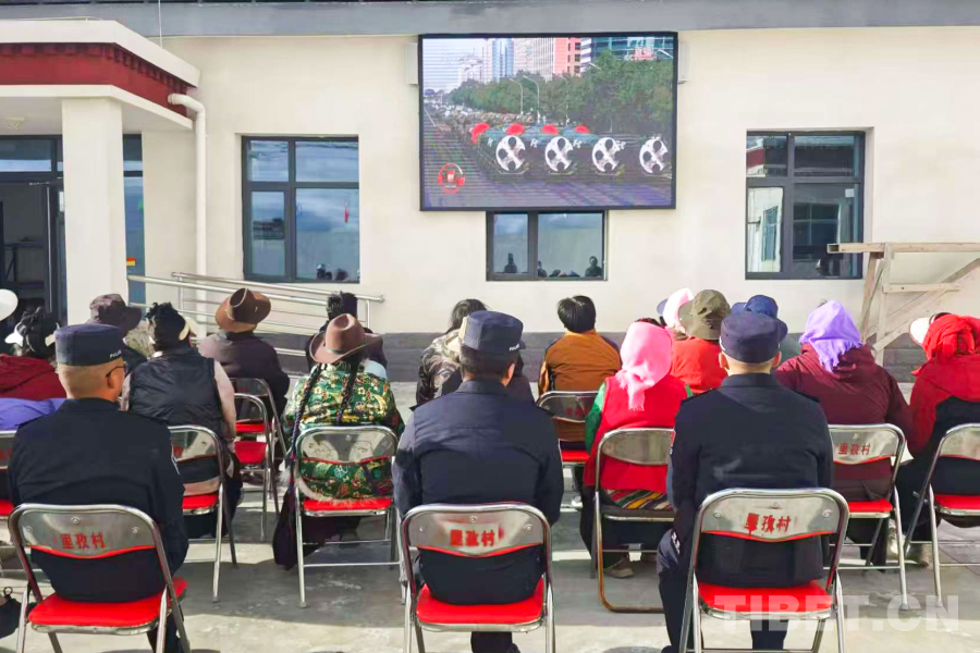 圖為日喀則邊境管理支隊仲巴邊境管理大隊里孜邊境派出所與轄區(qū)群眾共同觀看紀(jì)念中國人民抗日戰(zhàn)爭暨世界反法西斯戰(zhàn)爭勝利80周年大會 攝影:楊應(yīng)發(fā)