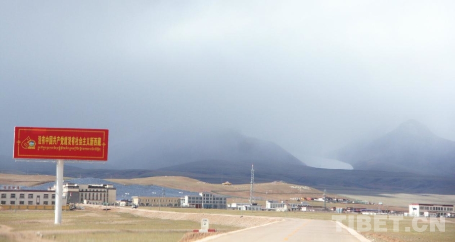圖為快到雙湖縣城時(shí),可以看到高架電線、光伏板、基站等基礎(chǔ)設(shè)施 攝影:趙釗