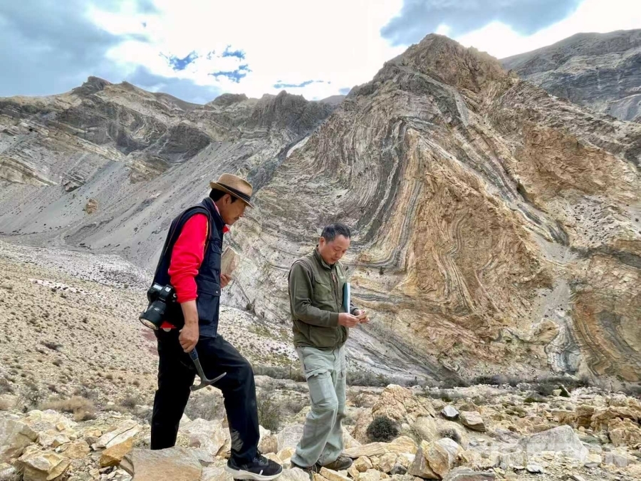 圖為俞江(左)在高原勘測(cè)地質(zhì)