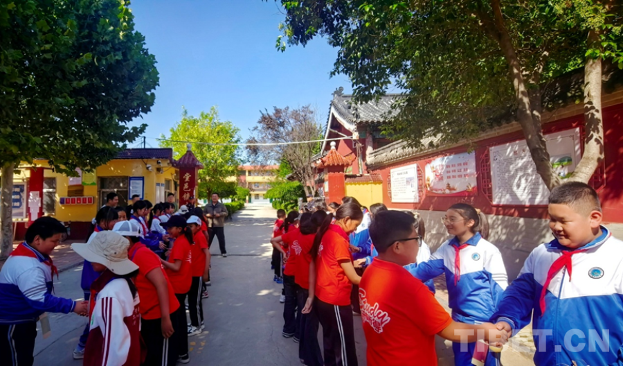 中國(guó)西藏網(wǎng)訊 9月25日,西藏自治區(qū)阿里噶爾縣孔繁森小學(xué)的師生來(lái)到位于山東省聊城市的堂邑鎮(zhèn)中心小學(xué)開(kāi)展聯(lián)誼活動(dòng)。堂邑鎮(zhèn)是孔繁森同志的故鄉(xiāng)。兩所學(xué)校的孩子們一起瞻仰孔繁森同志事跡、一起做游戲、同唱中國(guó)少年先鋒隊(duì)隊(duì)歌、共繪迎國(guó)慶主題畫(huà)卷……結(jié)下了深厚的情誼。