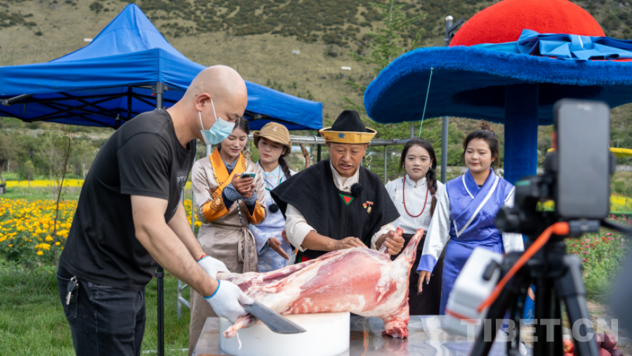 圖為活動(dòng)現(xiàn)場(chǎng)直播介紹藏香豬