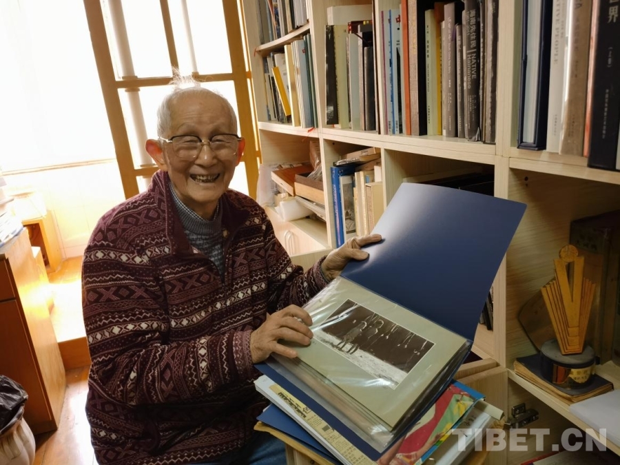 3月21日,我懷揣相冊(cè),專(zhuān)程登門(mén)拜訪丁遵新先生。來(lái)到丁先生家,一壁字畫(huà),滿(mǎn)屋書(shū)香。92歲高齡的先生,依舊精神矍鑠,思維敏捷。我說(shuō)明來(lái)意,攤開(kāi)相冊(cè),請(qǐng)先生辨認(rèn)這組西藏照片是否出自他手?先生凝視著照片,一時(shí)語(yǔ)塞,說(shuō):“當(dāng)年湖北團(tuán)只有我一名攝影記者,這些相片肯定是我拍的?!奔?dòng)之余,老先生進(jìn)到書(shū)房翻騰了好久,終于又找出兩張當(dāng)年的西藏照片,其中一張為罕見(jiàn)彩色印刷品,加上我母親保存的,總計(jì)12幅。