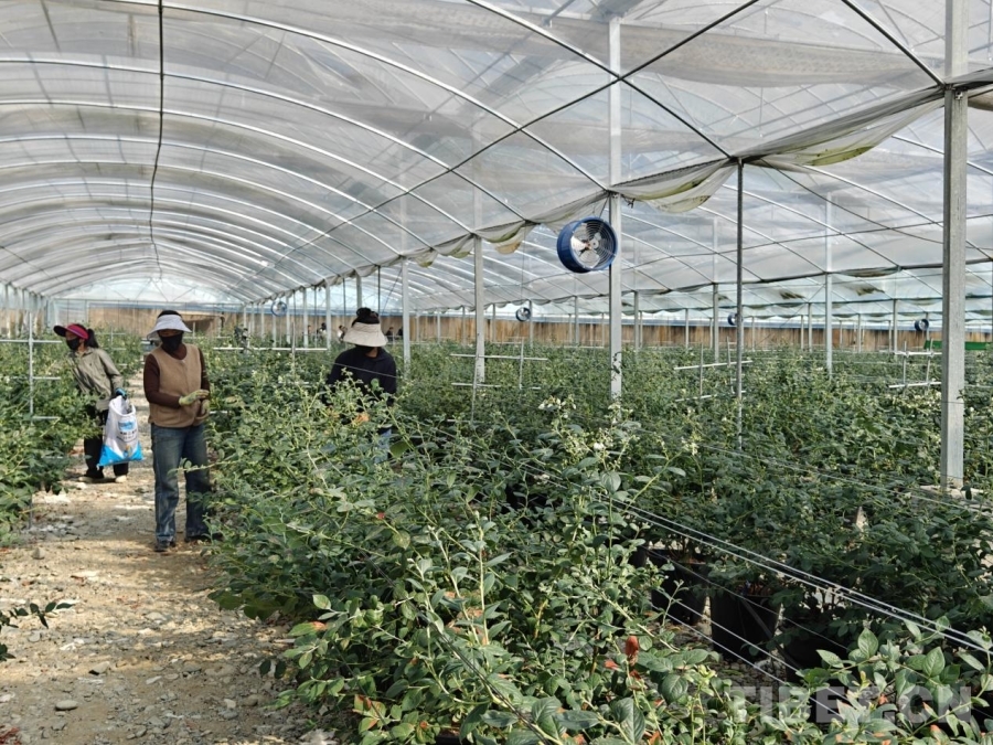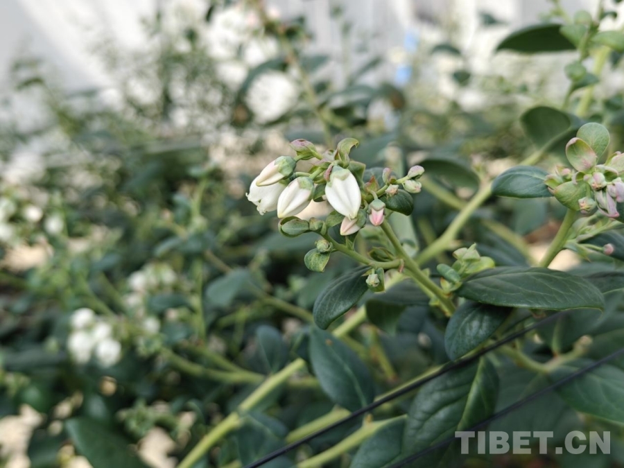 圖為戈壁田園現(xiàn)代農(nóng)業(yè)項目內(nèi)待結(jié)果的藍莓花