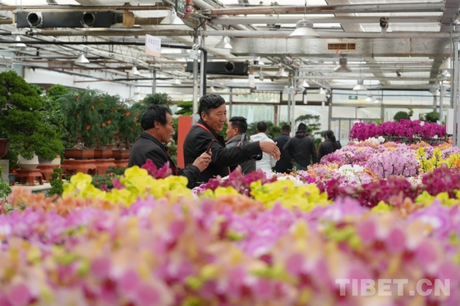 圖為西藏基層干部學習參觀團成員參觀花卉市場 攝影:王茜