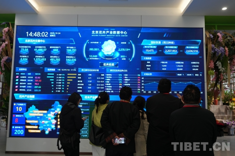 圖為西藏基層干部學習參觀團參觀花卉產業(yè)數(shù)據(jù)中心 攝影:陳玲玲