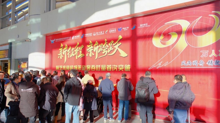 中國(guó)西藏網(wǎng)訊 12月5日,隨著西藏航空TV9730航班平穩(wěn)降落,林芝米林機(jī)場(chǎng)年旅客吞吐量首次突破90萬(wàn)人次大關(guān),標(biāo)志著該機(jī)場(chǎng)運(yùn)輸保障能力和區(qū)域航空市場(chǎng)發(fā)展邁入新階段。