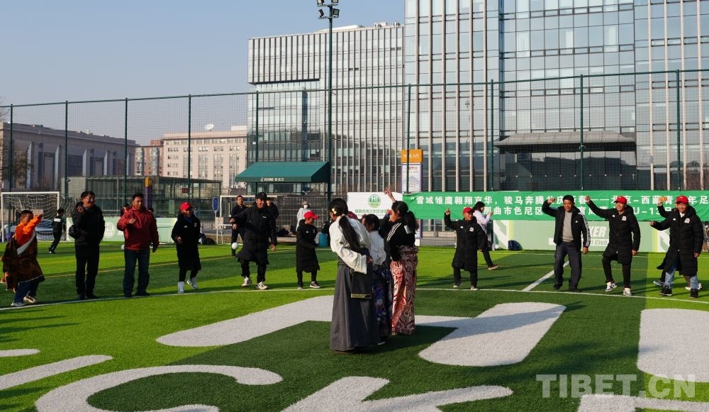 賽前儀式上,雙方球員列隊(duì)入場(chǎng),西藏球員為北京球員獻(xiàn)上潔白的哈達(dá),雙方輕觸拳面,彼此加油鼓勁。隨著裁判一聲哨響,比賽正式開始。綠茵場(chǎng)上,球員們盡情奔跑,汗水滴落紅彤彤的臉龐,呼出的氣息在寒冷的空氣中化作白霧,眼睛里卻裝滿對(duì)足球運(yùn)動(dòng)的認(rèn)真和熱愛(ài)。