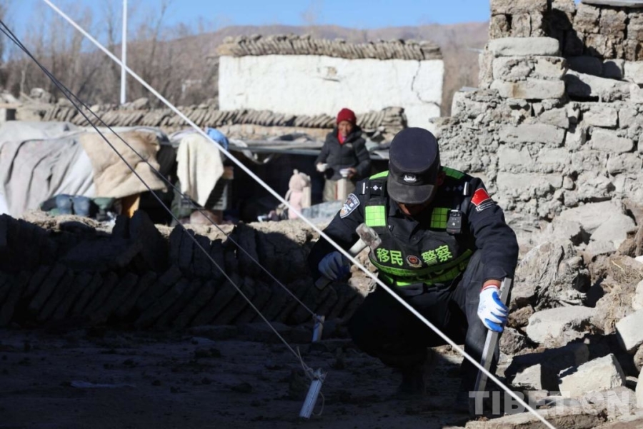 圖為武警官兵與公安民警在定日地震受災最嚴重的村莊之一定日縣長所鄉(xiāng)古榮村為受災群眾轉(zhuǎn)移財產(chǎn) (攝于2025年1月10日) 攝影:王淑