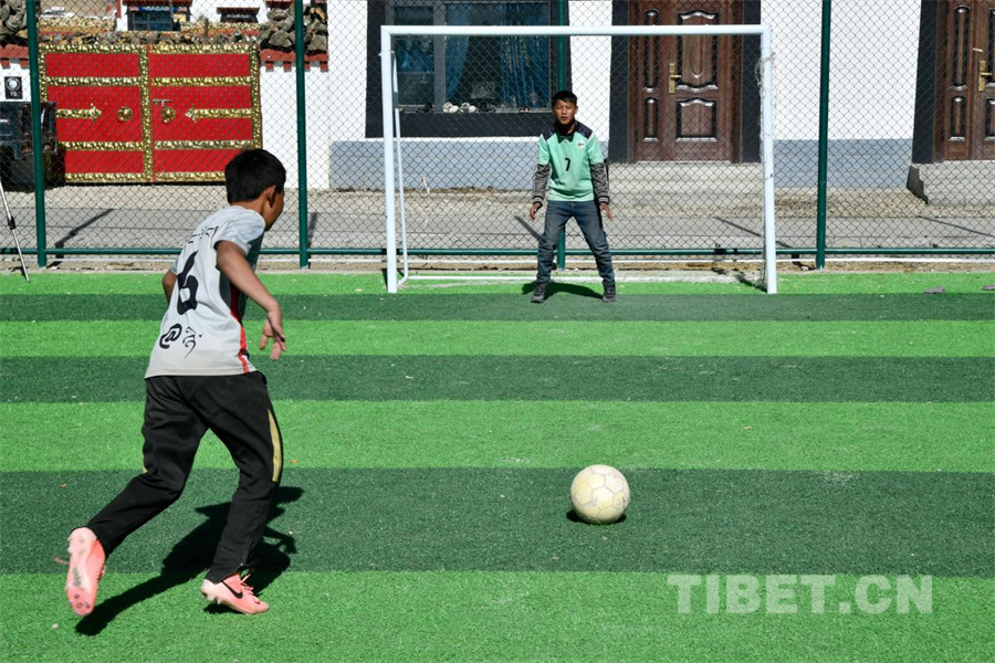 圖為定日縣長所鄉(xiāng)森嘎村的足球少年們擁有了自己第一塊標準化的足球場地(攝于2026年1月5日)攝影:趙振宇