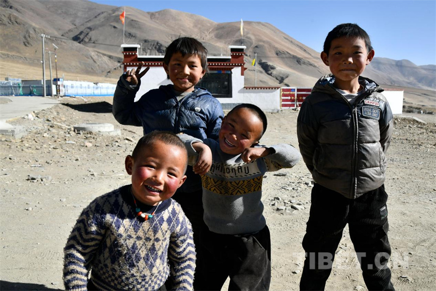 圖為定日縣長所鄉(xiāng)古榮村的受災兒童在新居前笑容更加燦爛(攝于2026年1月5日)攝影:趙振宇