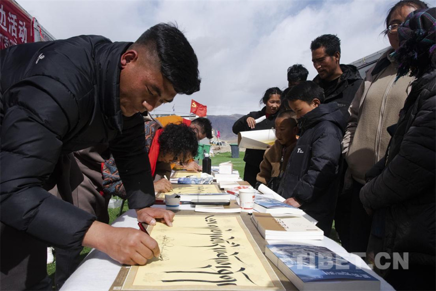 圖為藏歷新年之際,定結(jié)縣邀請日喀則市文聯(lián)書法家為受災群眾送上藏歷新年祝福(攝于2025年3月1日)攝影:趙振宇