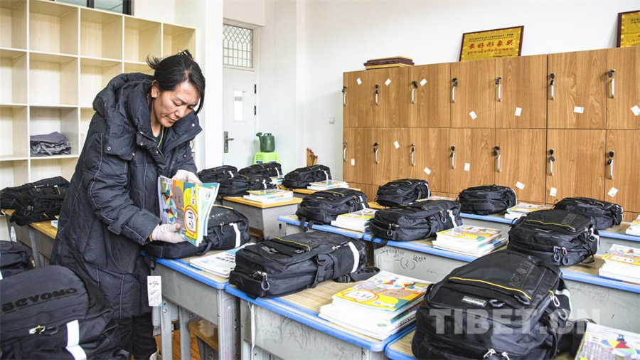 圖為日喀則市定日縣受地震影響的災區(qū)學校即將迎來2025年春季學期正式開學,老師正在為即將到校的學生分發(fā)教材與學習用具。(攝于2025年3月1日) 攝影:趙振宇