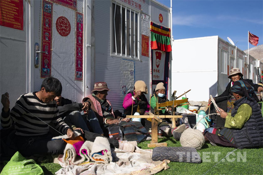 圖為定日縣協(xié)格爾鎮(zhèn)奶色姆村的次仁拉宗在新居前笑容燦爛地紡織毛線(攝于2026年1月5日)攝影:趙振宇