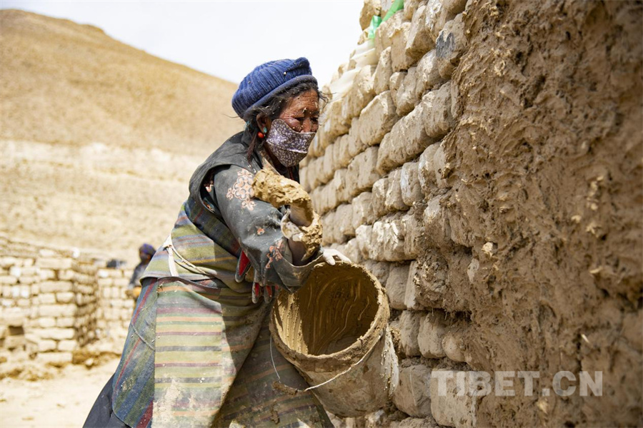 圖為定日縣曲洛鄉(xiāng)嘎白村的村民正在用中國鄉(xiāng)村發(fā)展基金會的10萬元資金修建畜圈。修建所需的材料都來自于受災村民自己坍塌的老房子的土磚,全村31戶村民每戶派出一名人員參與畜圈建設(shè),每天會獲得150元的務工報酬(攝于2025年2月27日) 攝影:趙振宇