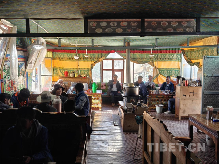 圖為長所鄉(xiāng)森噶村村民喬遷新居后拉姆重新營業(yè)的茶館內(nèi)歡聲笑語不斷,洋溢著濃厚的生活氣息(攝于2025年8月15日)攝影:次旦拉姆