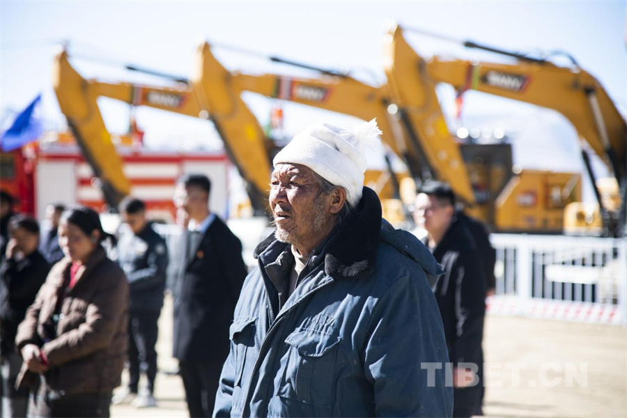 圖為定日縣6.8級地震8個整村推進村莊災后恢復重建項目啟動儀式在定日縣長所鄉(xiāng)古榮村舉行,標志著災后恢復重建工作啟動。(攝于2025年3月3日)攝影:趙振宇