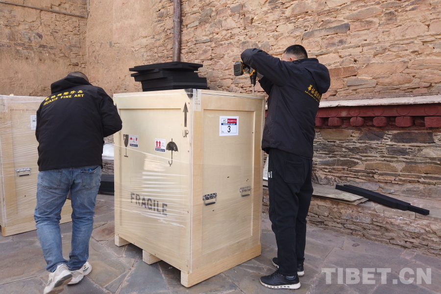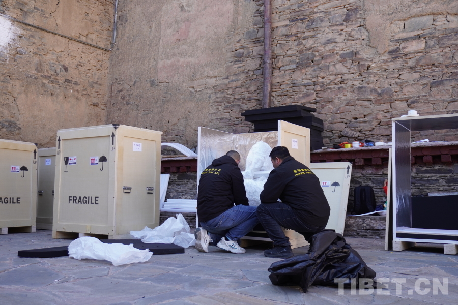 此次借展的敏珠林寺文物對于薩迦寺大展起到補充作用,讓展覽更加豐富。然而,文物“出差”并非“說走就走”,這些無價之寶的每一次移動都伴隨著一個精密而嚴謹?shù)倪^程——文物點交,這是確保文物安全的重要環(huán)節(jié)。