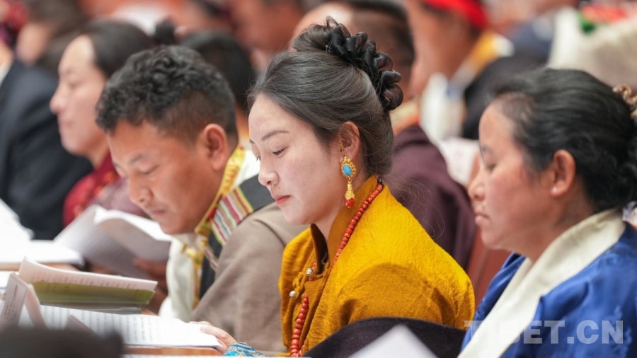 圖為人大代表聽(tīng)取和審議西藏自治區(qū)高級(jí)人民法院工作報(bào)告 攝影:賈華加