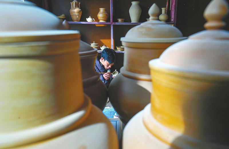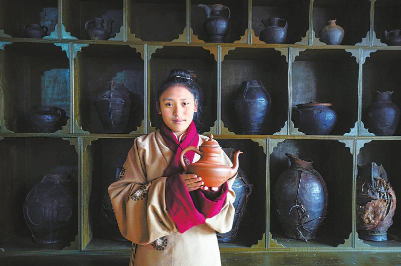 12月的冬日陽光透過壤巴拉藏式陶藝傳習所的窗口,在飛轉(zhuǎn)的泥坯上折射出金色的光芒。在四川省阿壩藏族羌族自治州壤塘縣上壤塘鄉(xiāng)仁棚村的這間陶藝傳習所,澤郎斯加正在陶器原型上修坯。澤郎斯加和傳習所的18名學員,都來自于壤塘縣貧困牧民家庭,經(jīng)過六年的學習和進修,他們在陶藝傳習所已熟練掌握了藏陶的拉坯、修坯、燒制等綜合技藝,并完成了德育、藏文、漢語、數(shù)學、電子商務(wù)、藏漢文書法、基礎(chǔ)繪畫等課程培訓。