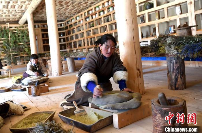 在藏香制作傳習(xí)所,藏族女孩麥莫正認(rèn)真看著老師用開孔牦牛角擠制傳統(tǒng)藏香?!奥毟弋厴I(yè)后我原本可以當(dāng)老師,但是我還是回到家鄉(xiāng)學(xué)習(xí)藏香,因?yàn)槲蚁矚g家鄉(xiāng)的花。”麥莫介紹,藏香會用到高原杜鵑花、藏紅花、雪蓮花等幾十種鮮花、藥材,每到鮮花盛開的季節(jié),都會有一兩百個(gè)女孩一同采集鮮花、藥材。最近大家還開發(fā)了藏香的衍生品香包、掛件等,即將在壤塘縣集中展示銷售非遺產(chǎn)品的“非遺超市”售賣。
