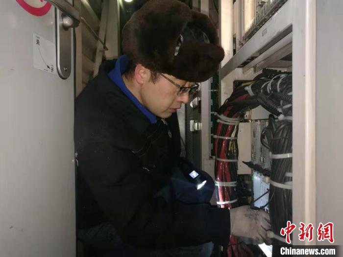 封小軍的雙腳踩在20厘米厚的積雪上,不時地發(fā)出“咯吱”的聲音,積雪迅速淹沒了他的腳踝。只見他手拿攝像手電,嫻熟地登上了機(jī)車,伴隨著一陣的轟鳴聲,內(nèi)燃機(jī)車發(fā)動了起來。
