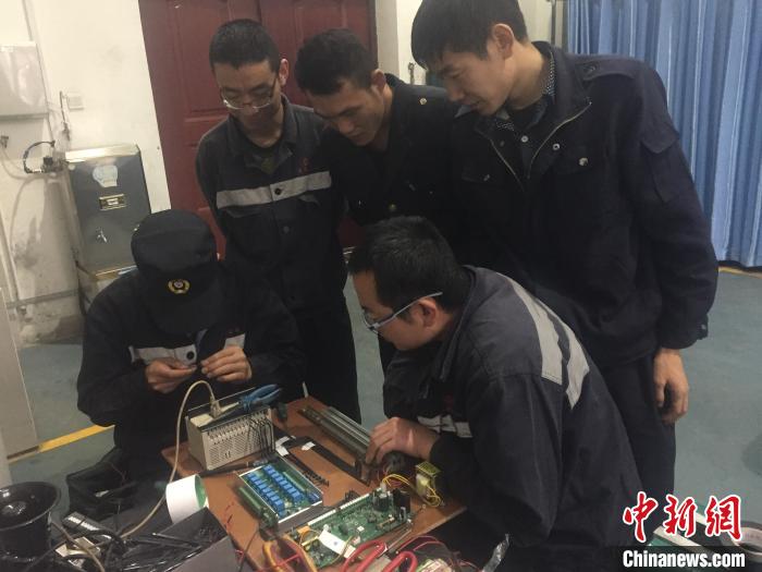 圖為黨磊在研判車(chē)輛故障。 蔡建庭 攝