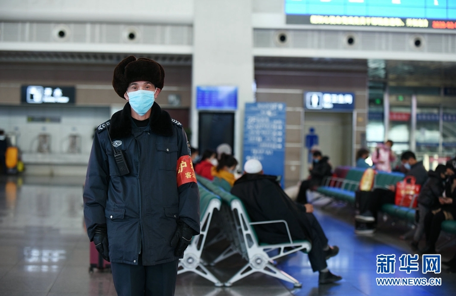 圖為西寧站內正在維護秩序的保安。新華網 李俊 攝