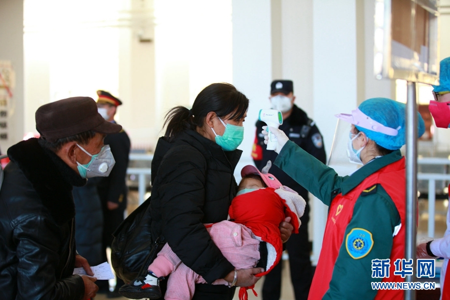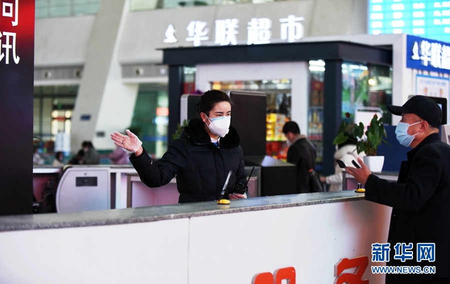德令哈車站工作人員為進站旅客測量體溫。新華網 汪要強 攝