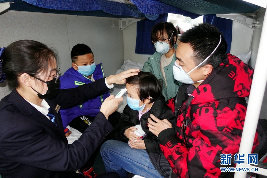 西寧客運段職工為旅客測量體溫。新華網 郝寶君 攝