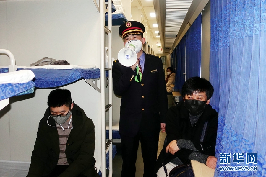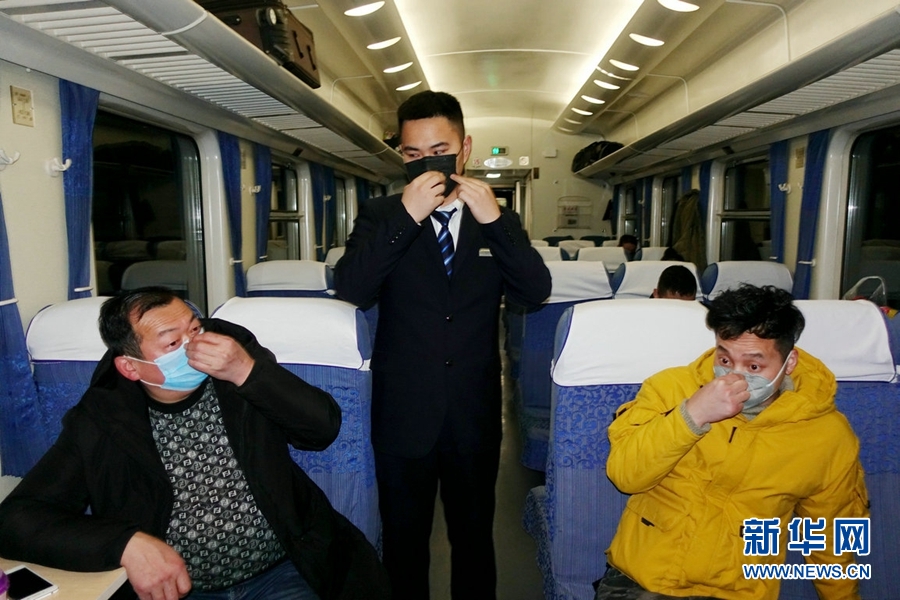 西寧客運段成都三組乘務員為旅客宣傳防疫知識。新華網 郝寶君 攝