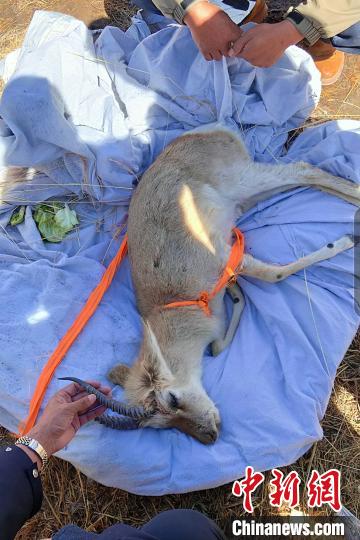 圖為受傷的國家二級保護野生動物雄性藏原羚。達日縣森林公安局供圖