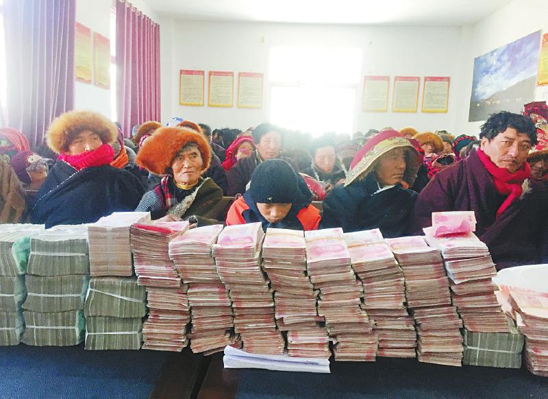 一年之間,變化不小。2016年11月,俄達(dá)門巴村貧困戶日澤算了一筆賬,“我女兒在景區(qū)上班,一個月工資3000元,家里每年人均1400多元集體分紅,400多元保險,放牦牛收入2000多元,日子好過多了”。
