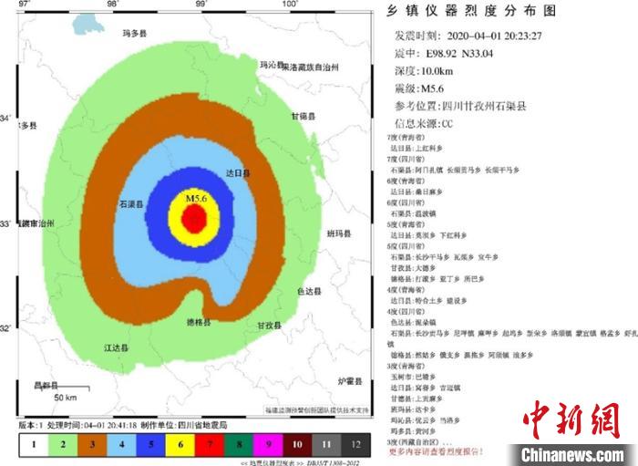 4月1日20時23分27秒,四川甘孜州石渠縣5.6級地震發(fā)生后,四川地震烈度速報與預警系統(tǒng)震后12秒發(fā)出報警信息,第一報5.0級,隨后3分08秒產(chǎn)出自動速報,部署于四川省通信管理局、成都鐵路局和四川省地震局等單位的預警終端發(fā)出報警,有力支撐了地震應急響應處置工作。