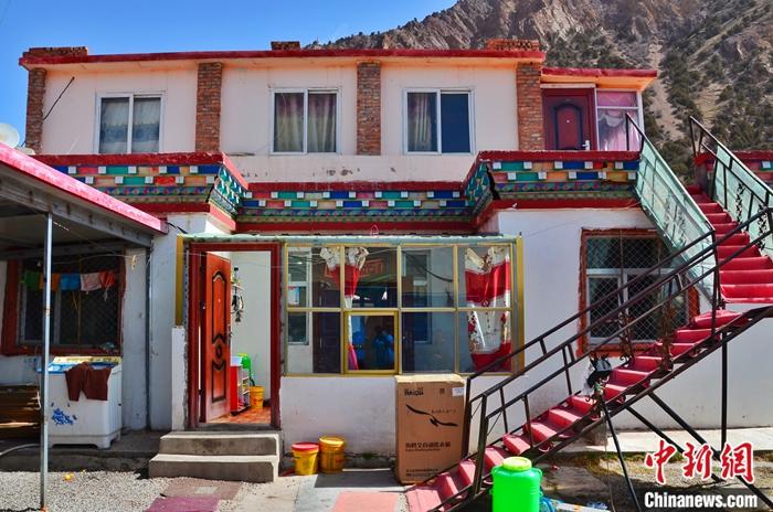 圖為拍攝于4月13日的牧民尕誦周拉的二層樓小院。中新社記者 魯?shù)り?yáng) 攝