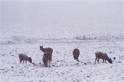下午6時(shí)35分,該地突降大雪,記者在守候了1小時(shí)2分后,23只前往卓乃湖產(chǎn)仔的藏羚羊,在五道梁保護(hù)站民警雙向禁停車輛的守護(hù)下,均平安通過青藏公路。