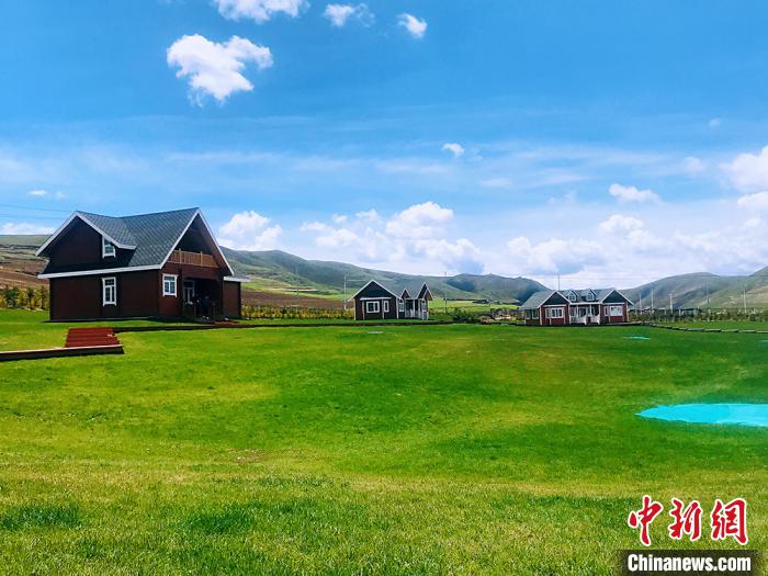 圖為甘肅省甘南州合作市綠草與藍(lán)天遙相呼應(yīng)。艾慶龍 攝