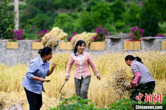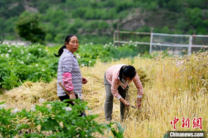 甘肅省舟曲縣:白龍江畔麥浪翻滾收割忙