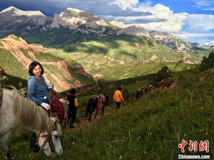 圖為2018年8月,劉馨濃(左)與接待家庭向?qū)円黄鹪O(shè)計(jì)騎馬線路。 中新社發(fā) 山水自然保護(hù)中心 供圖