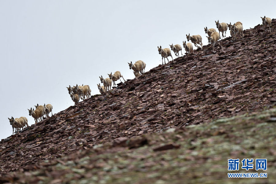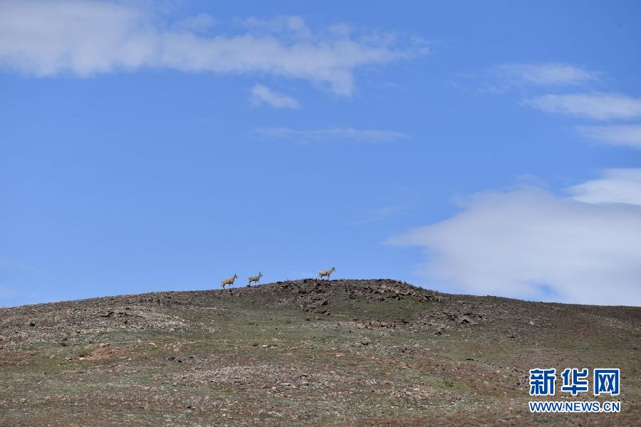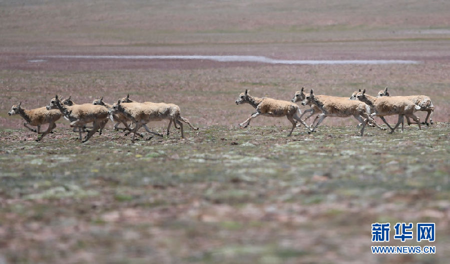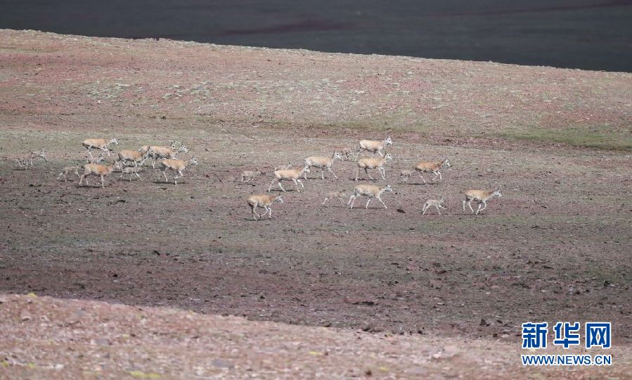 7月7日在可可西里卓乃湖區(qū)域拍攝的藏羚羊。新華社記者 張龍 攝