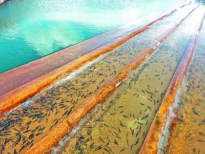 記者在沙柳河、泉吉河附近發(fā)現(xiàn),成群的湟魚(yú)聚集在敞開(kāi)式過(guò)魚(yú)通道前,有的已經(jīng)率先拾階而跳,向產(chǎn)卵區(qū)進(jìn)發(fā)。此外,還有不少在增殖放流站內(nèi)等待放流的湟魚(yú),它們均由人工在河里采集魚(yú)卵并培育而來(lái)。