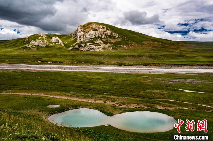 圖為位于雜多縣扎青鄉(xiāng)托乎曲大草原內(nèi)的“眼睛湖”,由于兩湖在水大時連在一起,好像一副眼睛。功霸扎西達杰 攝