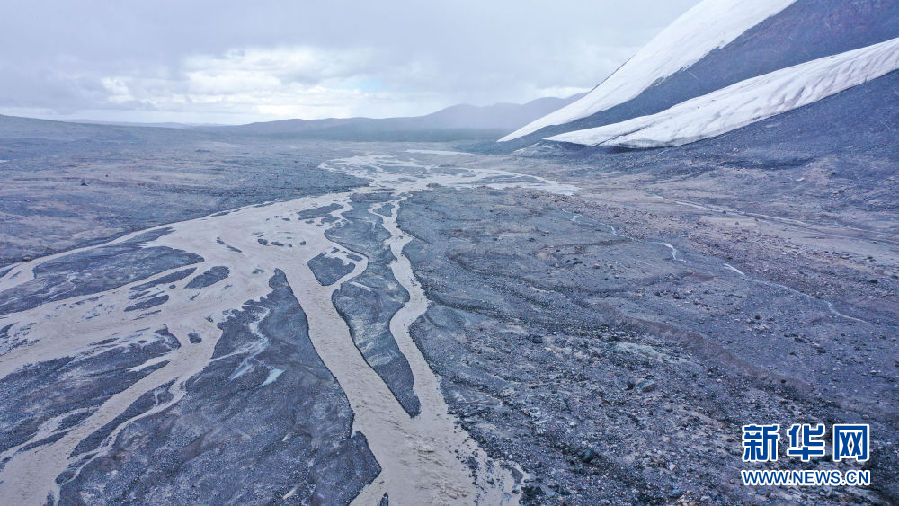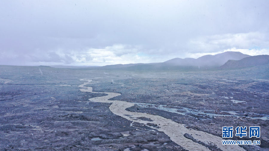這是8月15日拍攝的崗加曲巴冰川融水形成的尕爾曲(無人機照片)。新華社記者 吳剛 攝