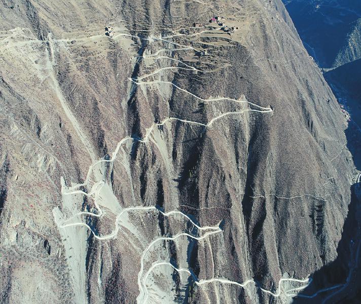 為了海拔4000米山頂14戶藏族村民 懸崖上筑出一條“通天路”